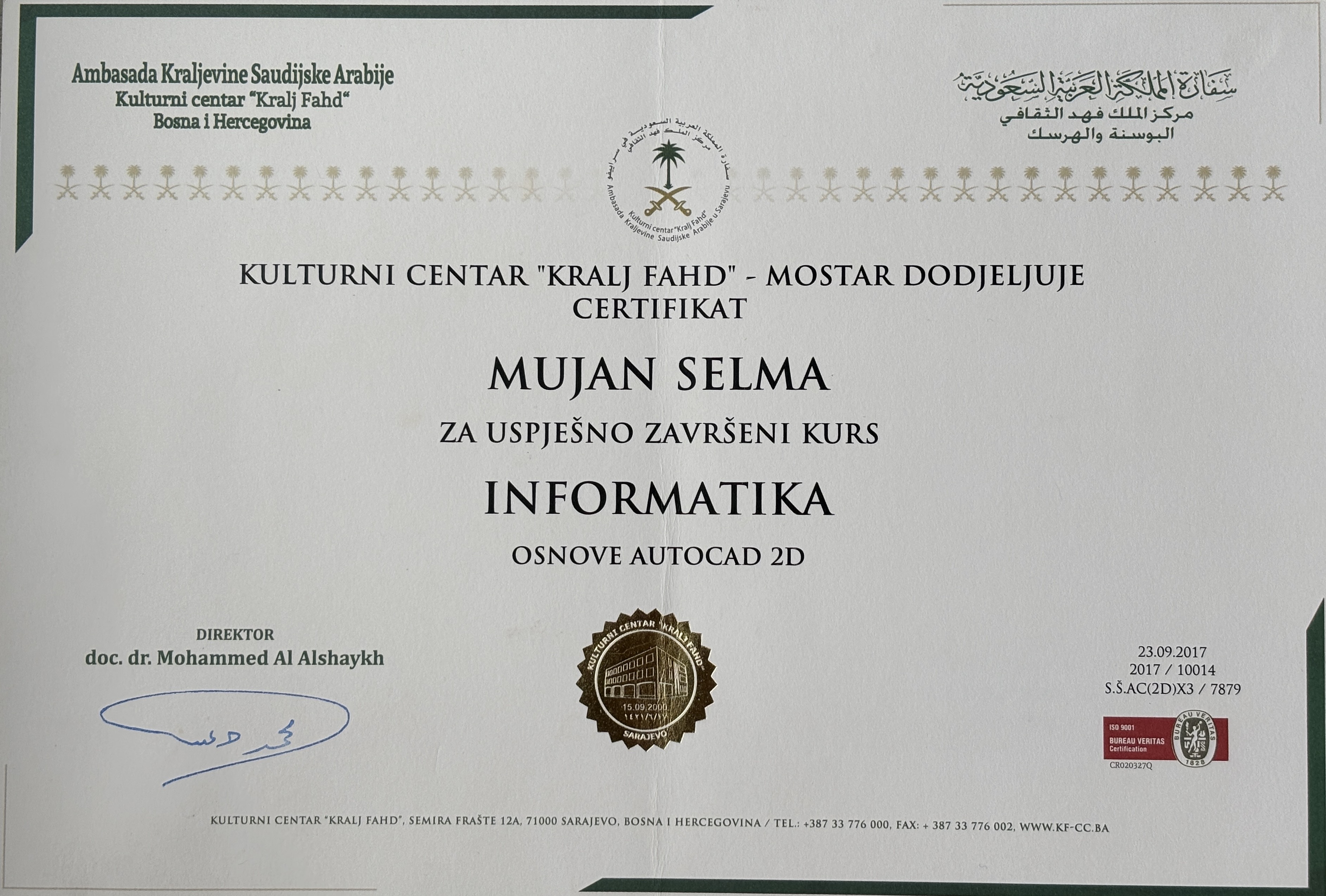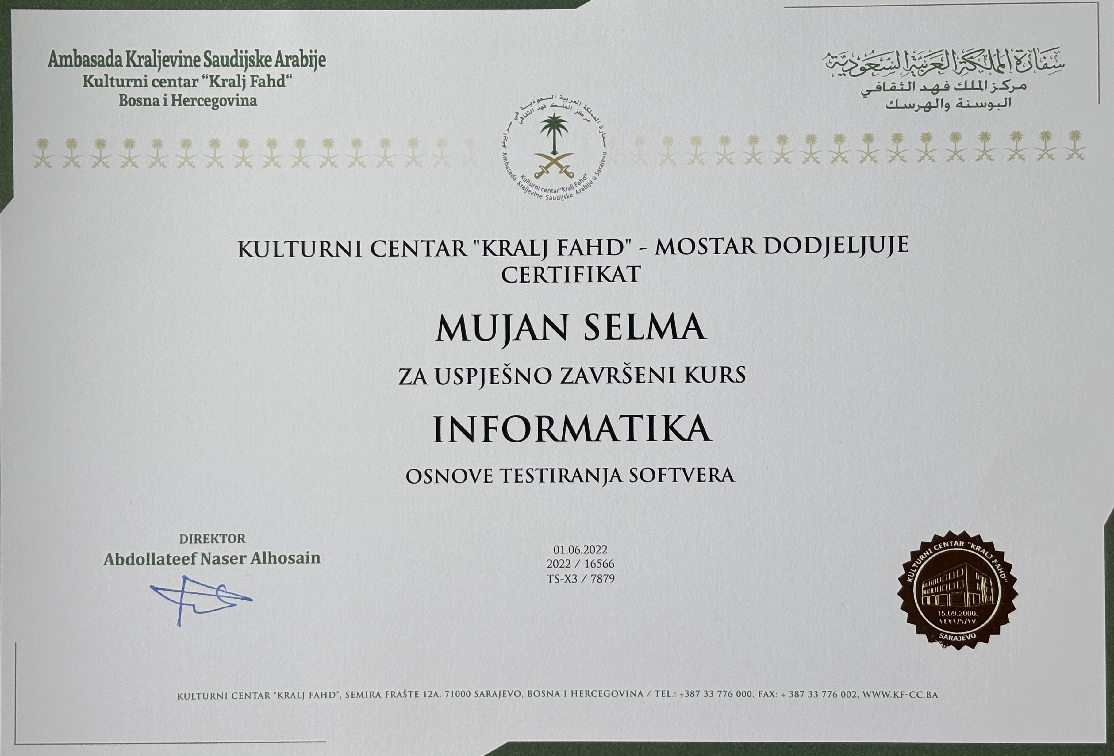 This is the certificate of my one-year work experience as an intern at the Ministry for Veterans’ Affairs of the Herzegovina-Neretva Canton (HNK).