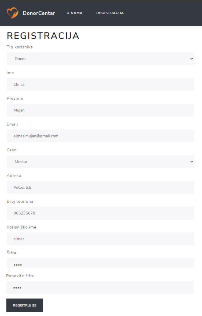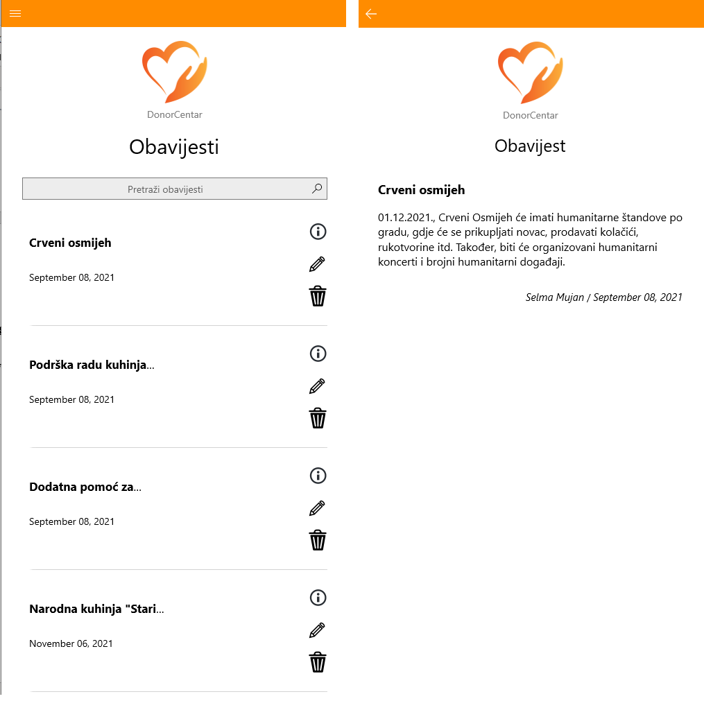 DonorCentar (Mobile App in Xamarin and Web App in C# .NET Framework, REST API and MySQL Database)