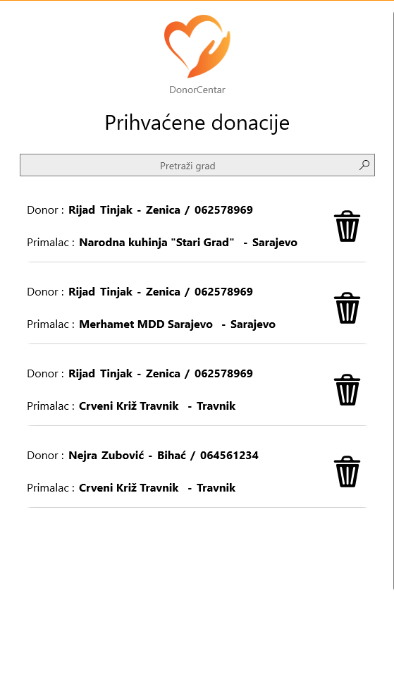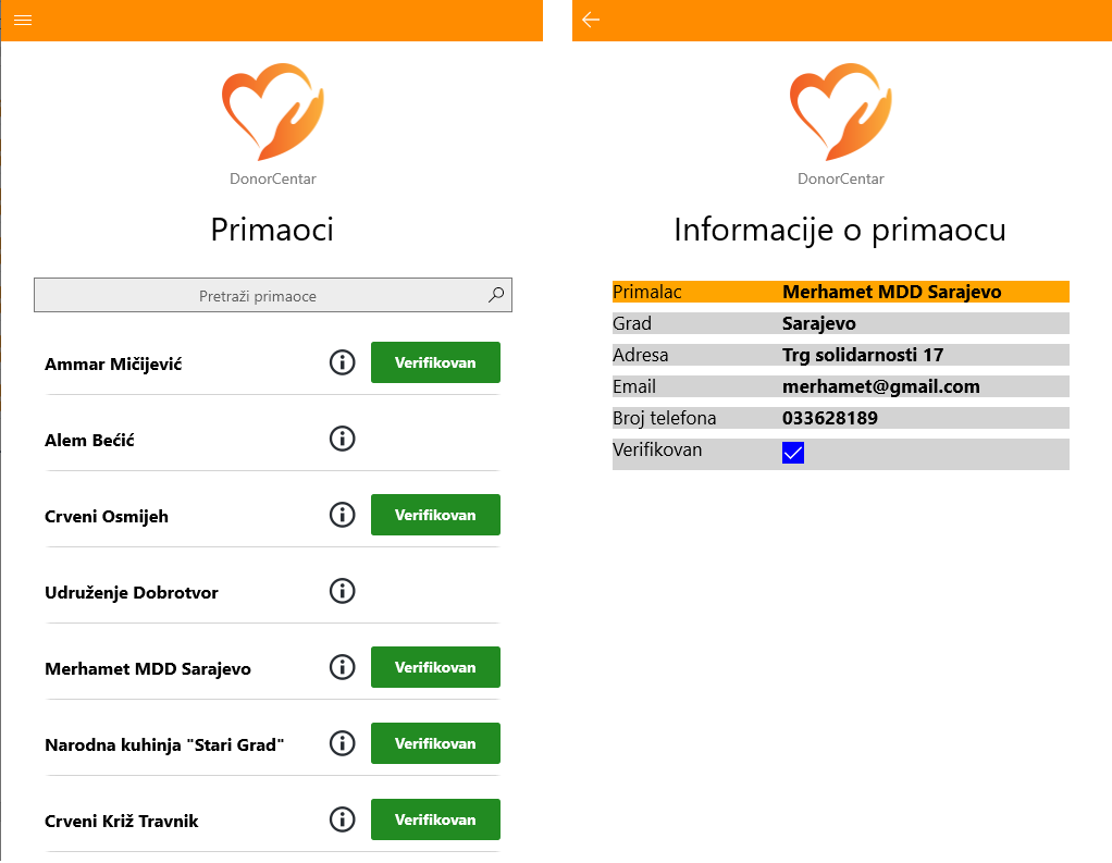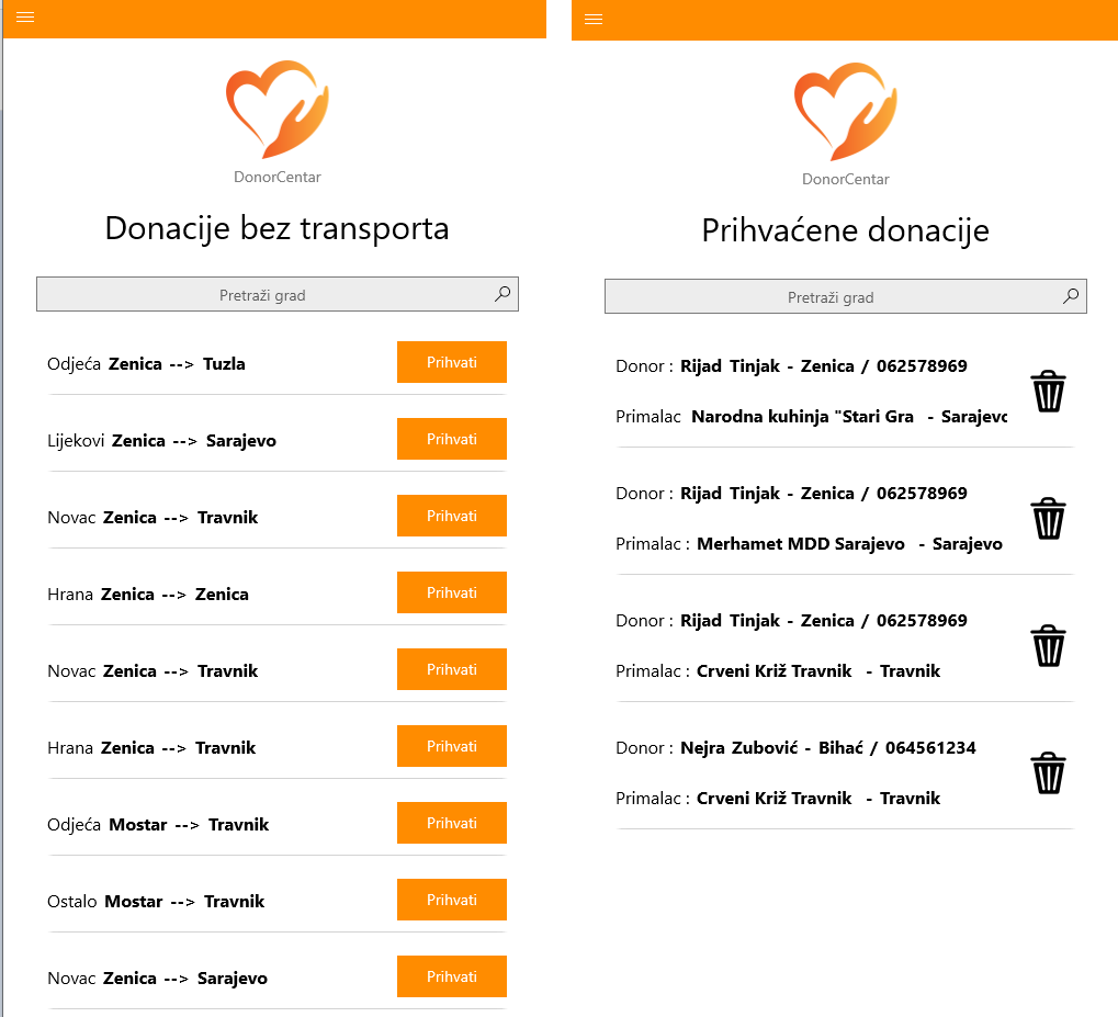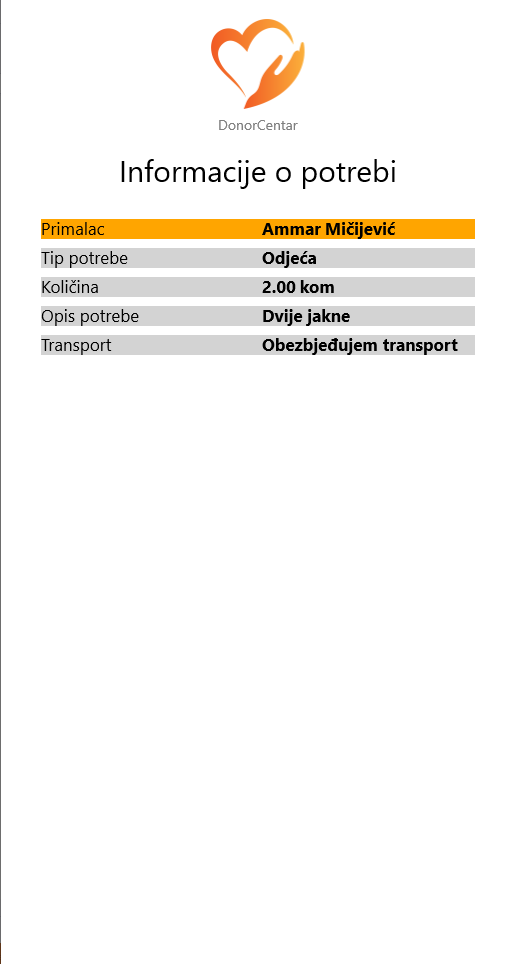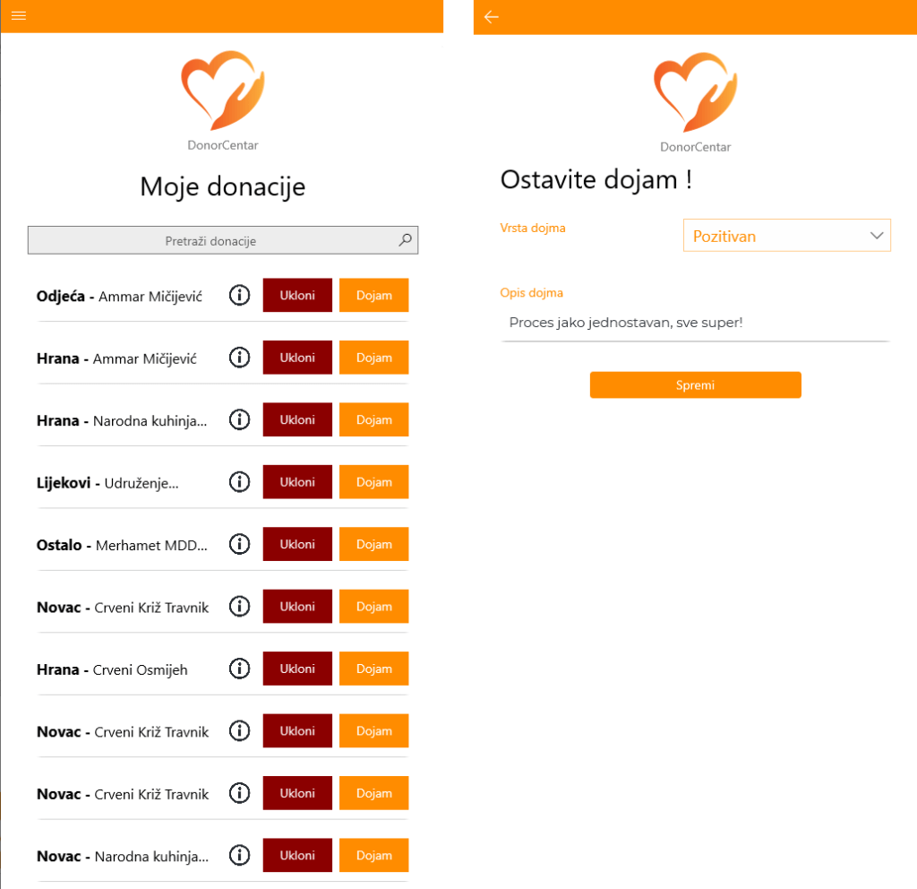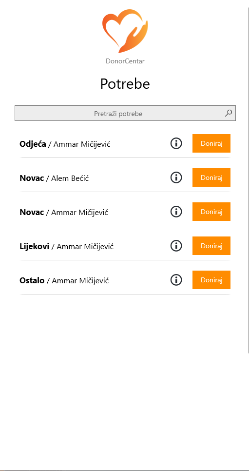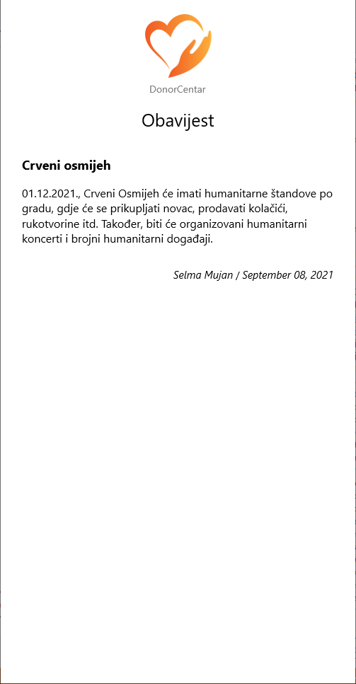 The DonorCentar app was developed with the goal of optimizing the donation process and supporting humanitarian causes. It consists of a mobile app built in Xamarin for multi-platform support (iOS and Android) and a web app developed using C# .NET Framework. The app is powered by a REST API and stores data in a MySQL database, enabling seamless communication between the mobile and web platforms.