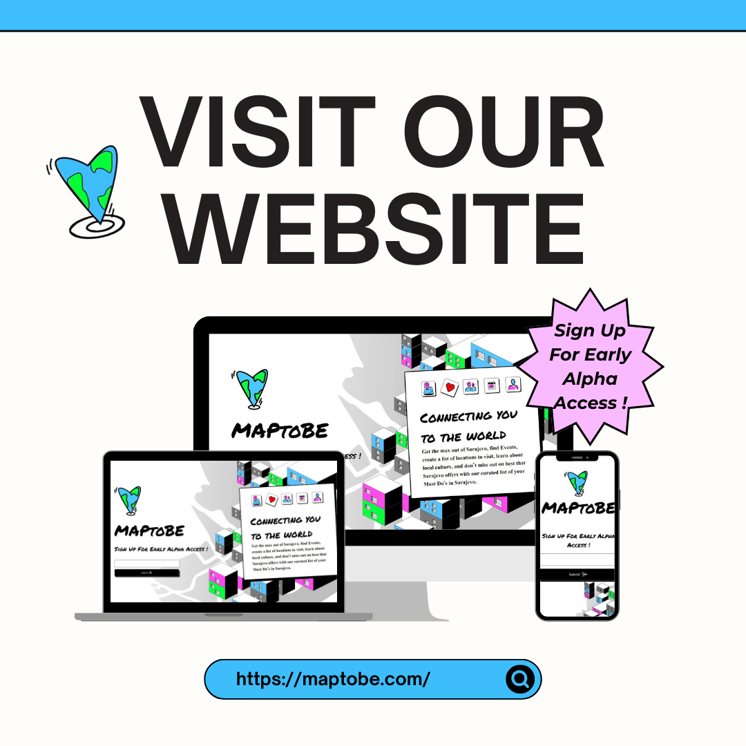 MapToBe is an augmented reality (AR) social network game designed to inspire exploration and help you connect with people who will enhance your life. They’ve launched an early alpha version focused on Sarajevo, Bosnia, and you can download the app to begin exploring this vibrant city. The app has two main sections: one showcasing the exciting events happening in Sarajevo, and the other highlighting its stunning locations.